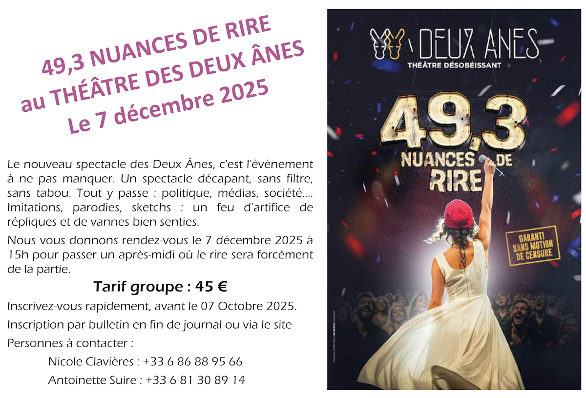 NB : Dans notre dernier bulletin vous avez une coquille pour l'inscription aux des deux ânes c'est bien 45 €