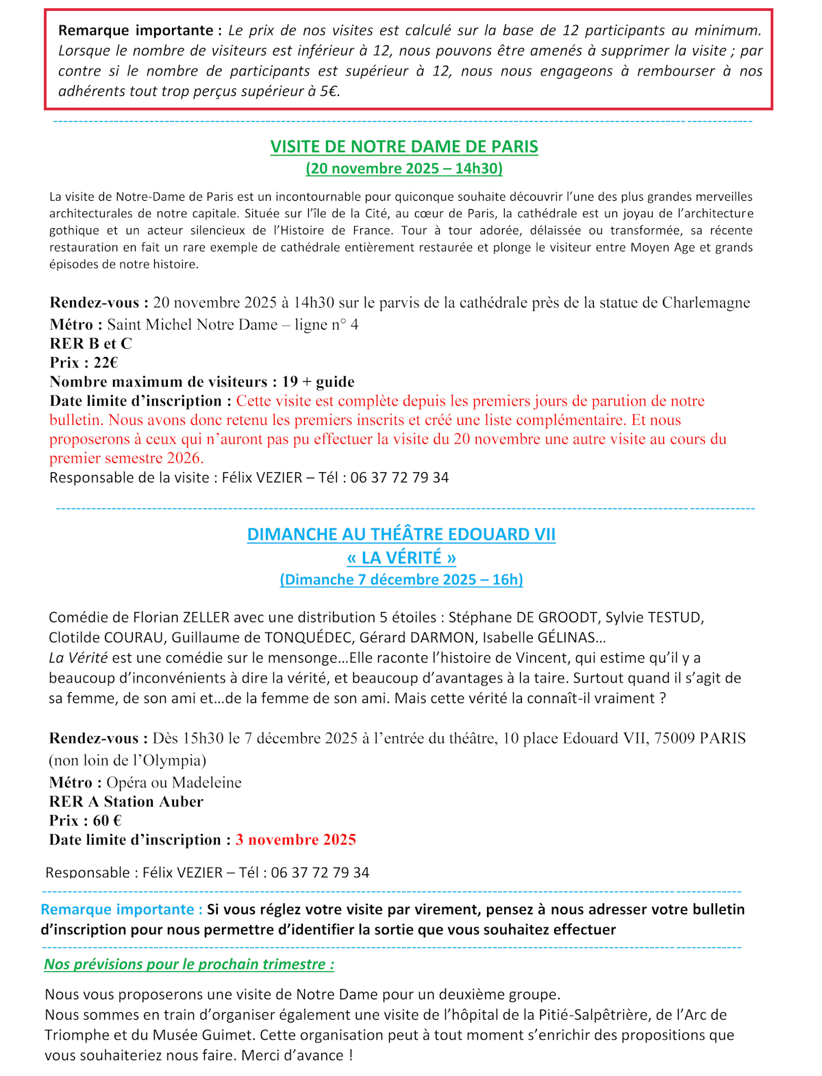 16 Octobre 2025 : Le groupe départemental ANR75 vous propose :