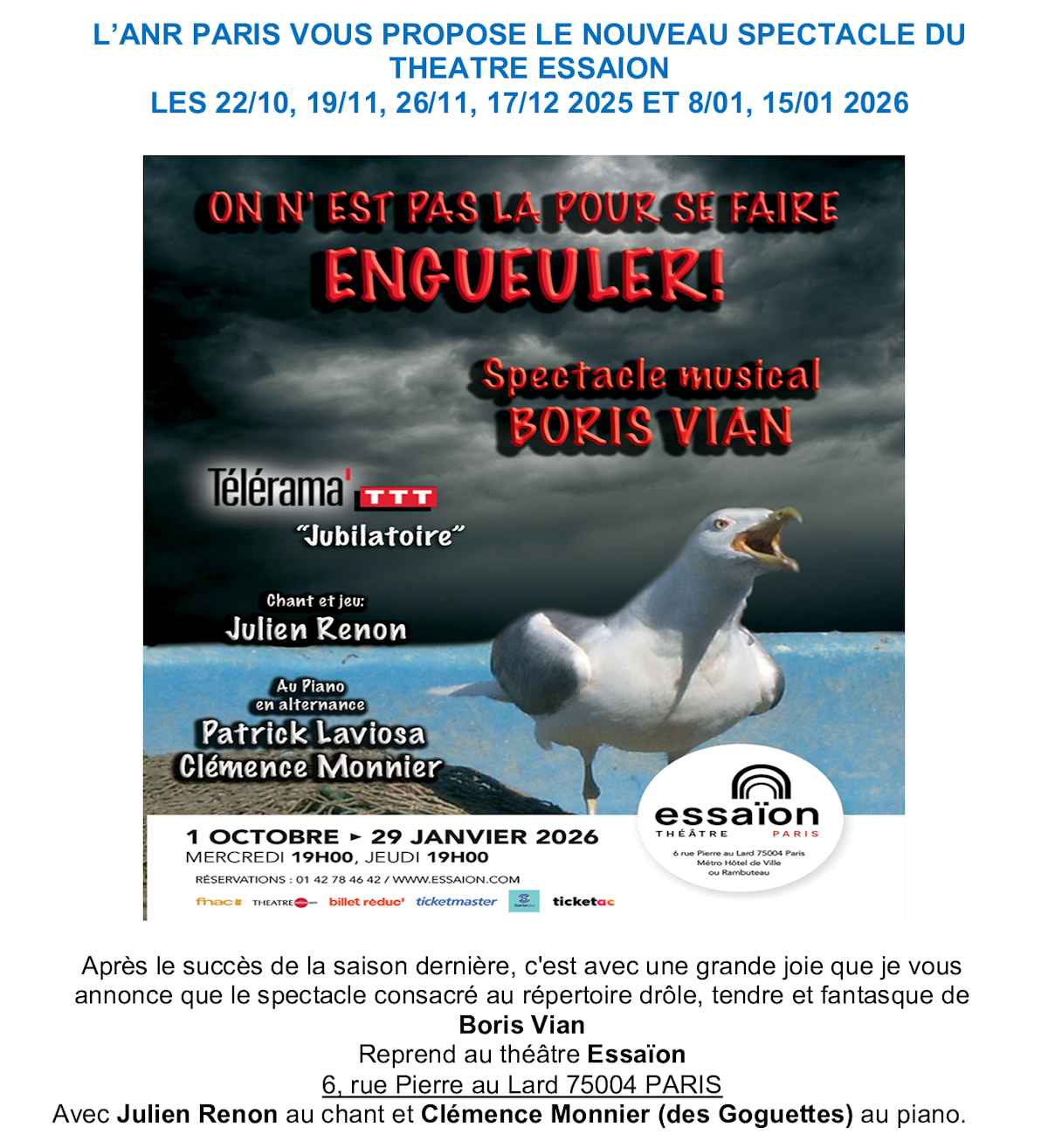 19 Octobre 2025 : Le groupe départemental ANR75 vous propose :