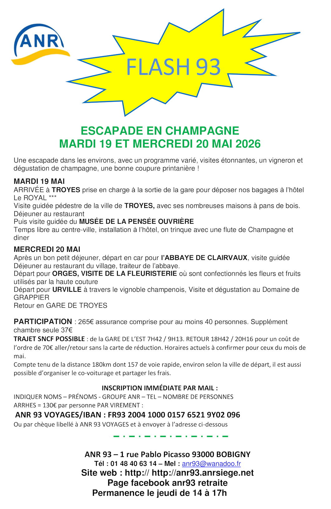 2 octobre 2025 : Le groupe départemental ANR93 vous propose :